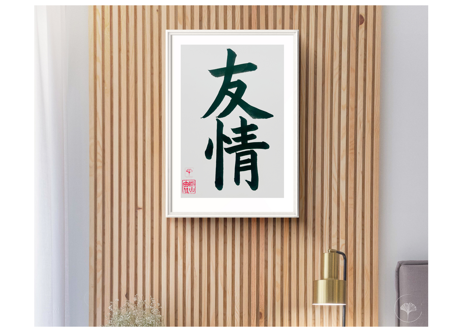 Katakana is one of the three scripts in Japanese writing, along with hiragana and kanji. It is mainly used for writing foreign words, names of plants and animals, technical terms, and sometimes to emphasize certain words, similar to italics or bold in Western texts. Because it is often used for foreign words, katakana is often found in modern Japanese culture, such as in fashion, technology, and marketing. For us at Genki Amsterdam, we use katakana script to stylishly and strikingly incorporate modern elements into our art. A beautiful handmade Katakana is a beautiful piece of art for your wall and makes every room in your home special.