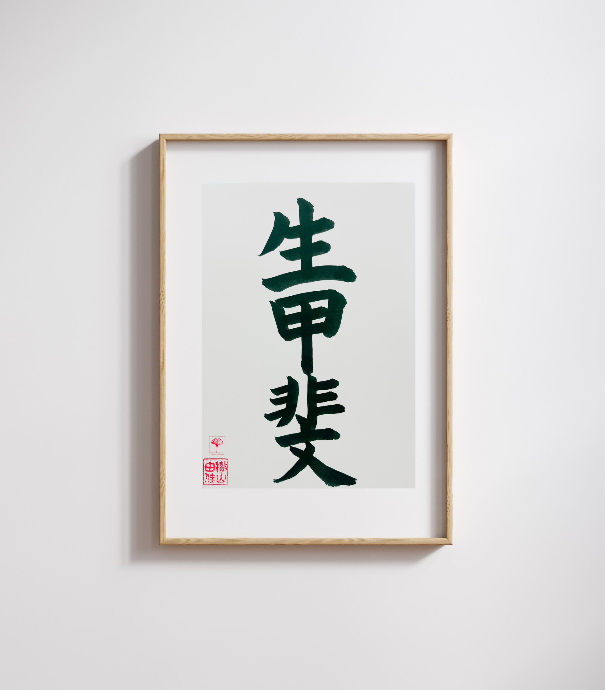 Unieke Handgemaakte Poster - Japanse Letterkunst/Kalligrafie - Betekenis: 'Ikigai' - A4/A5 - 100% puur katoenen papier - Persoonlijk origineel cadeau - Japanse kunstvorm - GENKI Amsterdam - Prenten/Japandi look/Met of zonder lijst beschikbaar