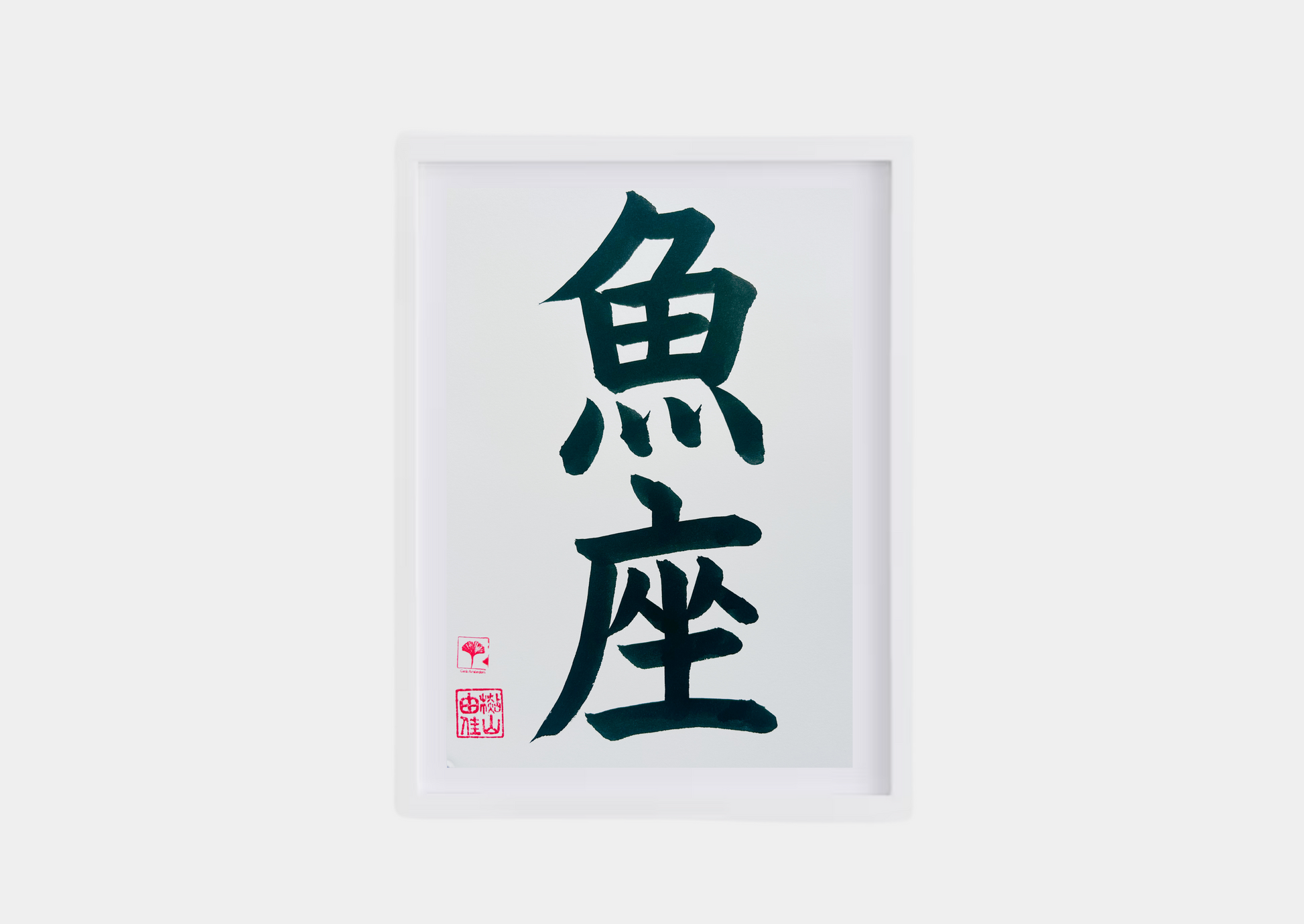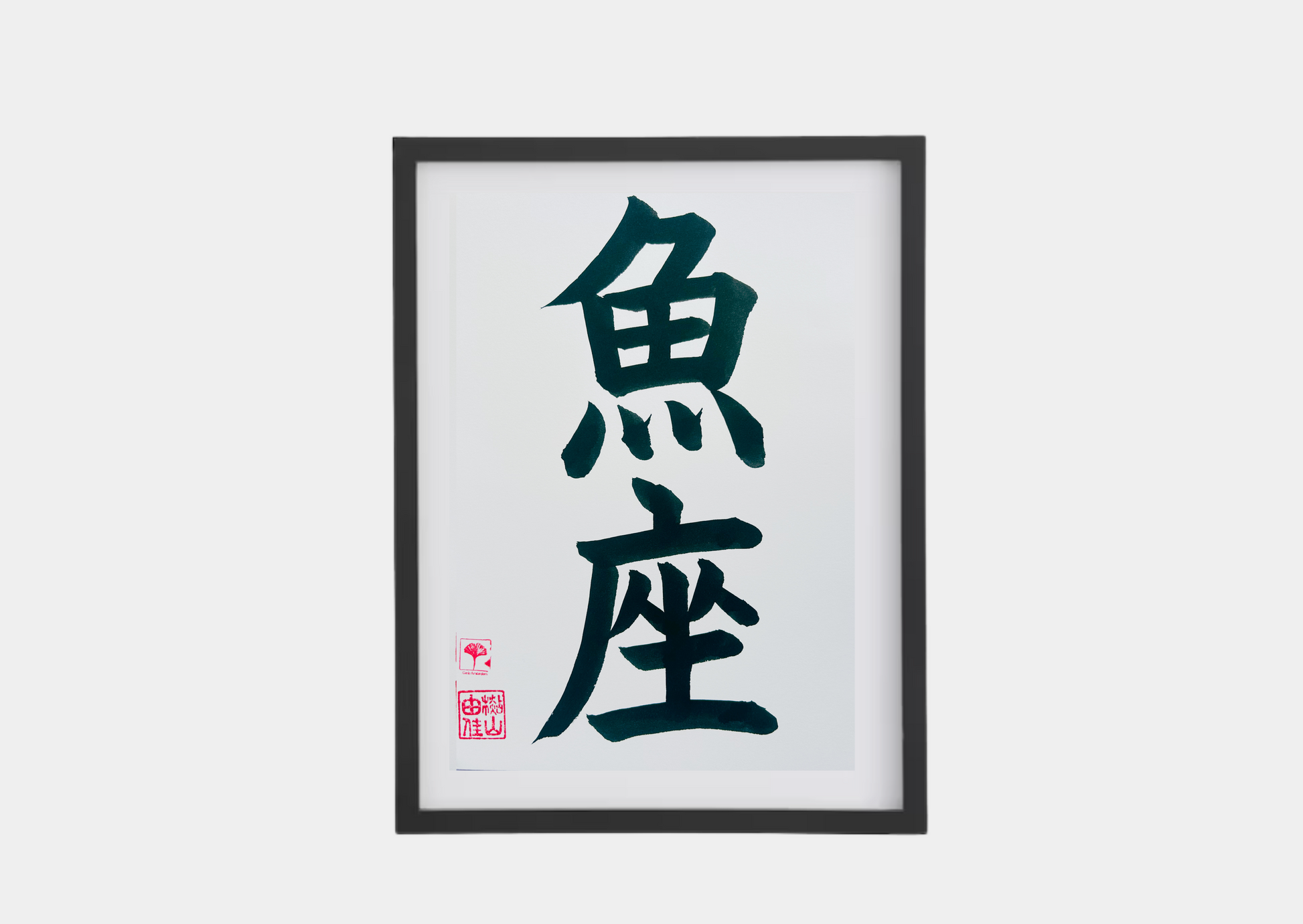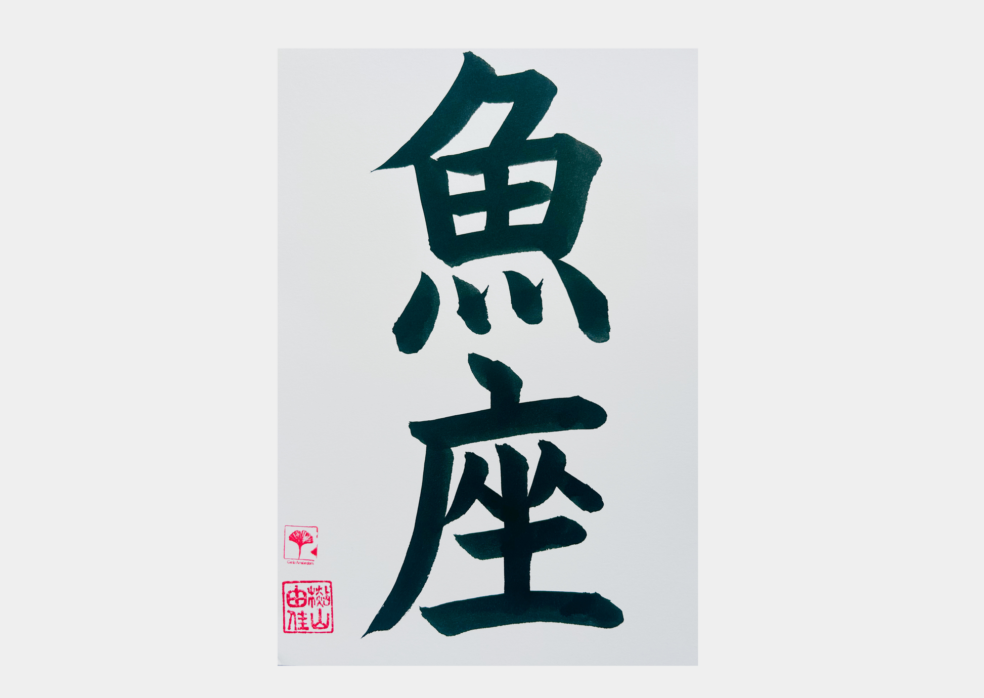Unieke Handgemaakte Poster - Japanse Letterkunst/Kalligrafie - Sterrenbeeld - Betekenis: 'Vissen'/'Pisces' - A4 - 100% katoenen papier - Persoonlijk origineel cadeau - GENKI Amsterdam - Prenten/Japandi look/Met of zonder lijst beschikbaar